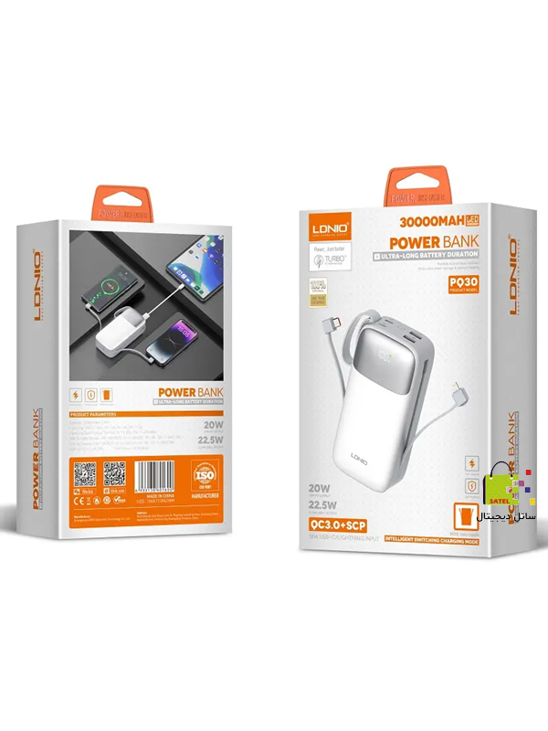 پاوربانک LDNIO PQ30 با ظرفیت فوقالعاده 30000 میلیآمپر ساعت، گزینهای قدرتمند برای افرادی است که به شارژدهی طولانیمدت و مطمئن نیاز دارند. این پاوربانک با ترکیب عملکرد بالا و طراحی مدرن، پاسخگوی نیاز کاربران در سفر، محل کار، کمپینگ و استفادههای روزمره است.